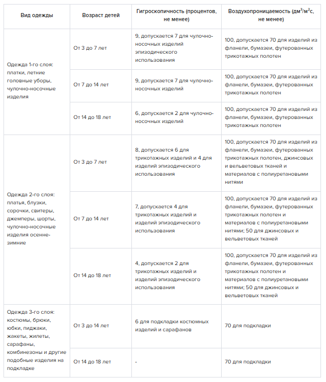 Качество. Требования к качеству одежды для детей и подростков регулируются техническим регламентом Таможенного союза ТР ТС 007/2011. Установили нормы безопасности для одежды 1-го, 2-го и 3-го слоев. Подробнее – в таблице.