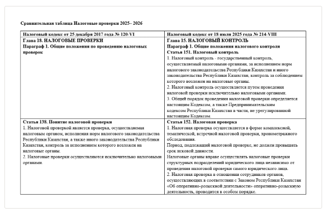 - детализированные основания тематических проверок – ст. 156 НК РК 2026;