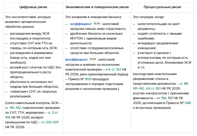 Акцент смещается с «как пережить проверку» на «как не попасть в зону риска еще до проверки» (ст. 153. Случаи и основания для назначения налоговой проверки, МФ РК № 659 от 29.10.2025 «Об утверждении Правил назначения налоговых проверок и хронометражных обследований»).