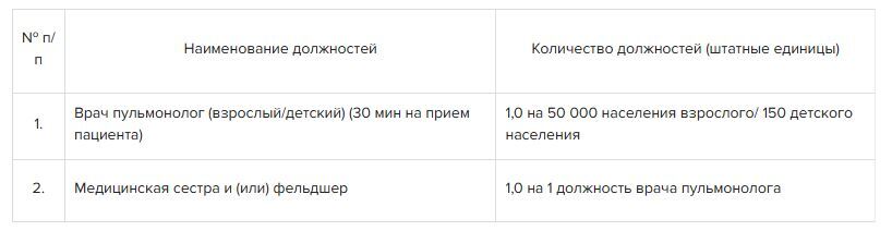 Также в приложении 1 утвердили штатные нормативы для оказания пульмонологической помощи.