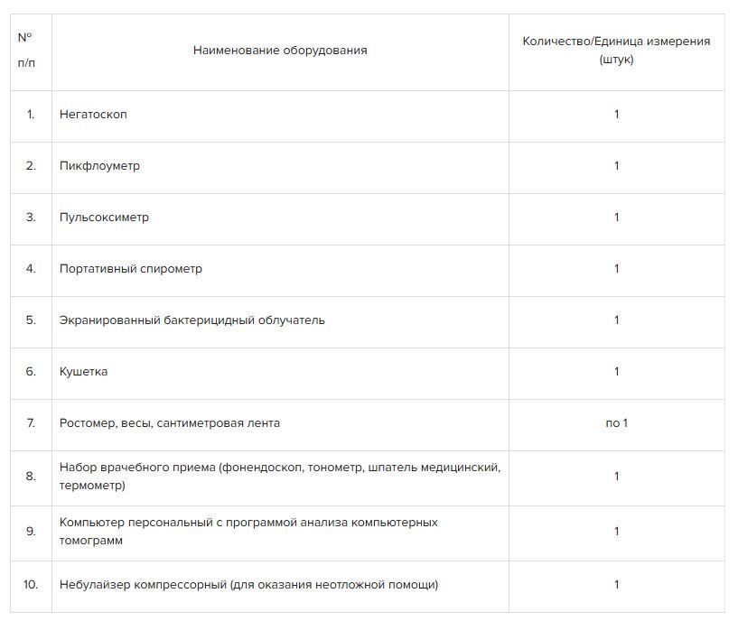 Рекомендуемое оснащение медицинскими изделиямиОснащение кабинета пульмонолога