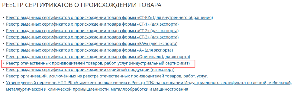 - реестр казахстанских товаропроизводителей.
