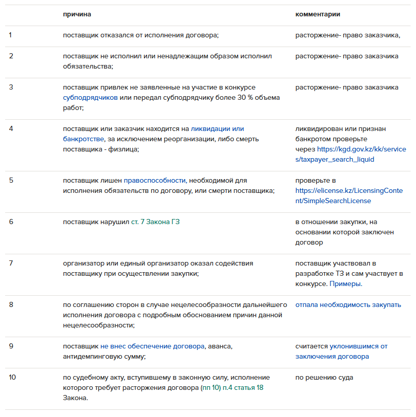 Случаи, когда Заказчик расторгнет договор о госзакупках до истечения срока его действия по п. 4 статьи 18 Закона ОГЗ. По всем основаниям Заказчик подает иск в суд о признании поставщика недобросовестным участником госзакупок.