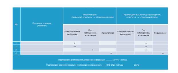 Клинические привилегии — перечень операций и процедур высокого риска, выполнение которых разрешено врачу в данной медицинской организации.