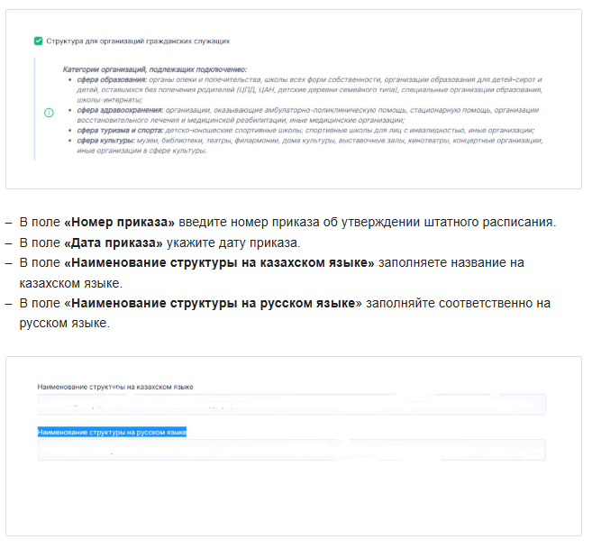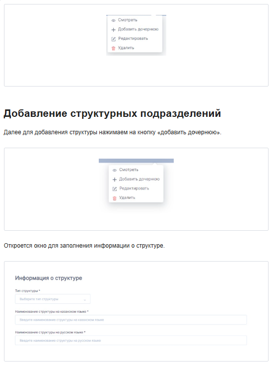 - название подразделения на русском и казахском языках;