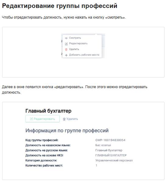 - После создания группы профессий нельзя изменить количество рабочих мест.