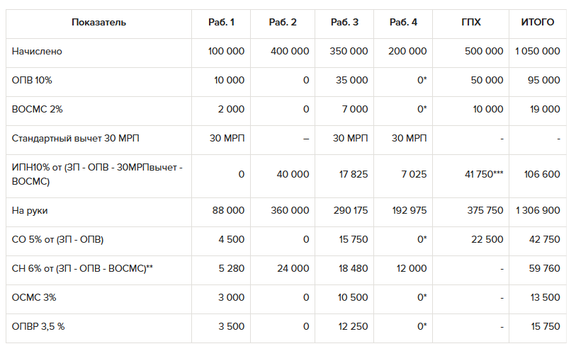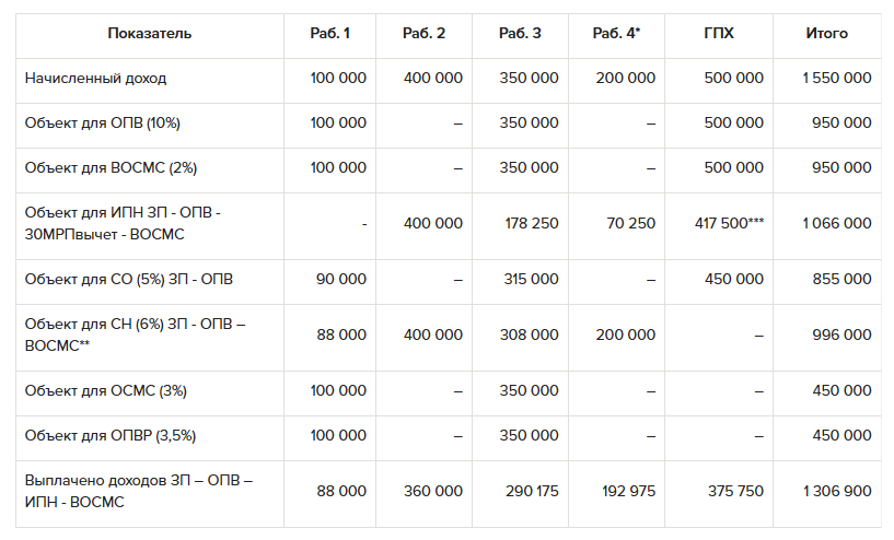*** При расчете ИПН с ГПХ применяется вычет СО = 10% от (ЗП - ОПВ- ВОСМС - СО - 30МРПвычет)