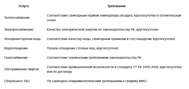 Вопросы, не охваченные Приказом и.о. МИИиР РК № 249, регулируются отраслевыми НПА в сферах энергетики, тепло- и водоснабжения, водоотведения, газоснабжения, обращения с ТБО и обслуживания лифтов.