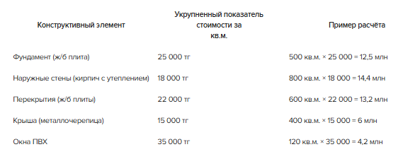 Это нормативные показатели стоимости строительства, рассчитанные не по каждой мелкой позиции (кирпич, гвоздь, куб бетона), а по целым конструктивным элементам здания – фундамент, стены, перекрытия, крыша и т. д.