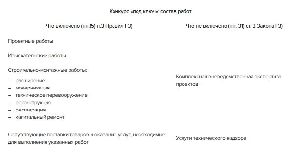 Перечень документов для проведения конкурса «под ключ» пока не утвержден. Однако предполагается, что заказчик должен приложить: