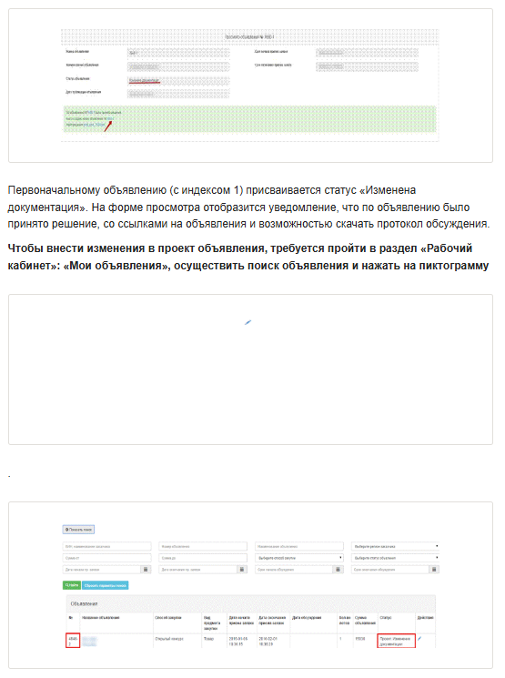 При принятии решения внести изменения или дополнения в проект конкурсной документации после публикации протокола обсуждения системой автоматически создается проект закупки с индексом 2.