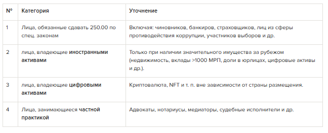 В 2025 году подход к всеобщему декларированию существенно изменен. Теперь список лиц, обязанных представлять ф. 250.00 жестко ограничен четырьмя группами.