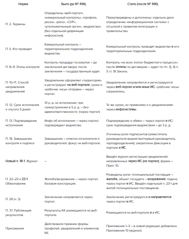 Для наглядности мы подготовили сравнительную таблицу «было/стало» по ключевым блокам: