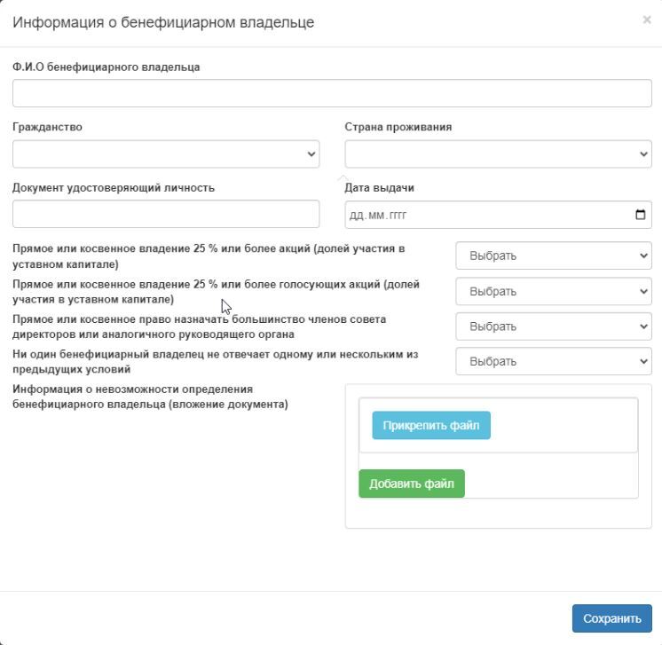 - Внесите данные о бенефициарном владельце.